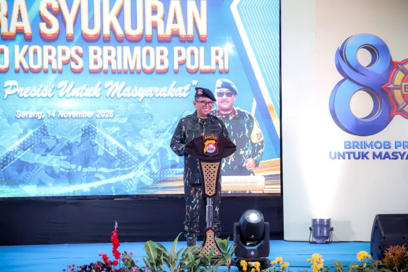SERANG, PUBLISIA.ID – Pemerintah Provinsi (Pemprov) Banten menegaskan komitmennya untuk memperkuat sinergi dengan Kepolisian Republik Indonesia (Polri), khususnya Korps Brigade Mobil (Brimob), demi menjaga stabilitas keamanan daerah. Penegasan ini disampaikan oleh Gubernur Banten, Andra Soni, saat menghadiri Syukuran Hari Ulang Tahun (HUT) ke-80 Korps Brimob Polri di Markas Satuan Brimob Polda Banten, Kota Serang, pada Jumat (14/11/2025).