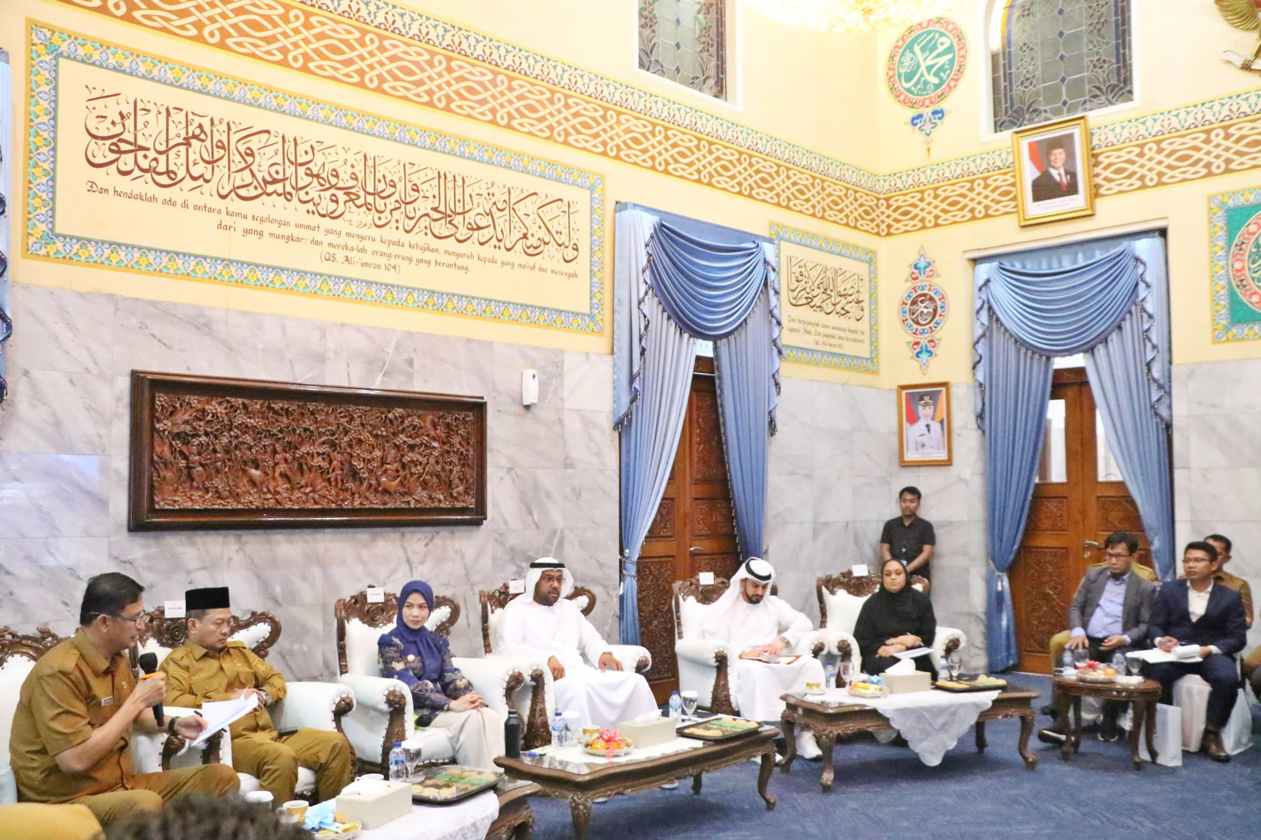 ”Kami Kedatangan tamu yang luar biasa Duta Besar UEA untuk Republik Indonesia, H.E. Abdulla Salem Al Dhaheri beserta jajaran dalam rangka kunjungan kerja,” ujar Ratu Zakiyah kepada wartawan.