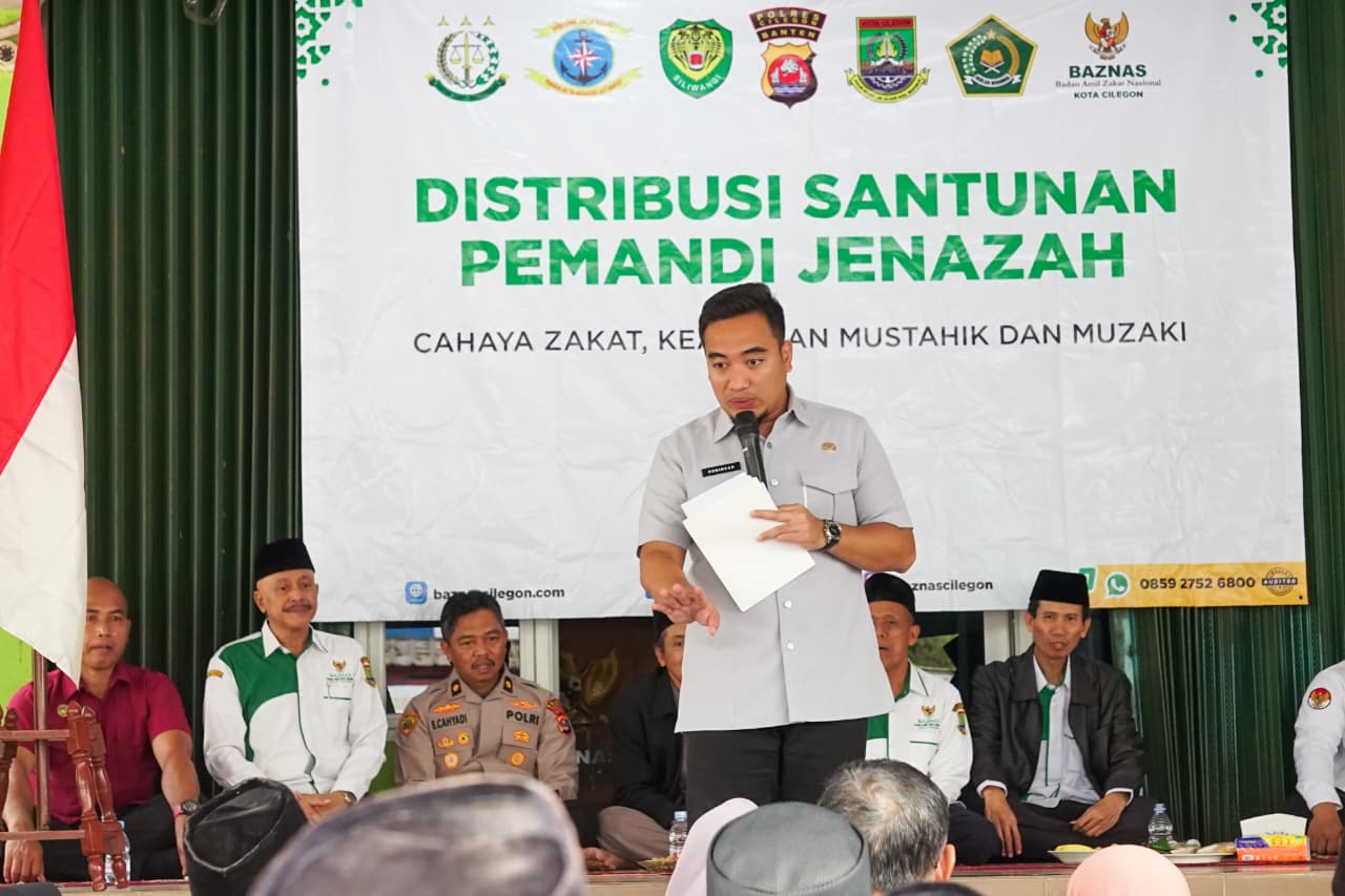 CILEGON, PUBLISIA.ID – Pemerintah Kota (Pemkot) Cilegon melalui Badan Amil Zakat Nasional (Baznas) Kota Cilegon mendistribusikan Santunan kepada pemandi jenazah. Pemberian santunan yang turut dihadiri Walikota Cilegon Robinsar ini berlangsung di Halaman Kantor Baznas Kota Cilegon, Selasa (23/12/2025).