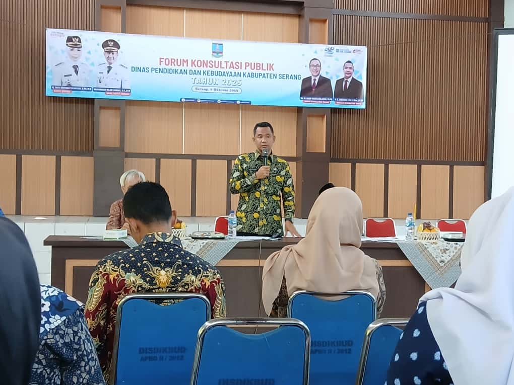 SERANG, PUBLISIA.ID – Pemerintah Kabupaten (Pemkab) Serang melalui Dinas Pendidikan dan Kebudayaan (Disdikbud) menggelar Forum Konsultasi Publik Dinas Pendidikan dan Kebudayaan Kabupaten Serang Tahun 2025, Kamis (9/10/2025).